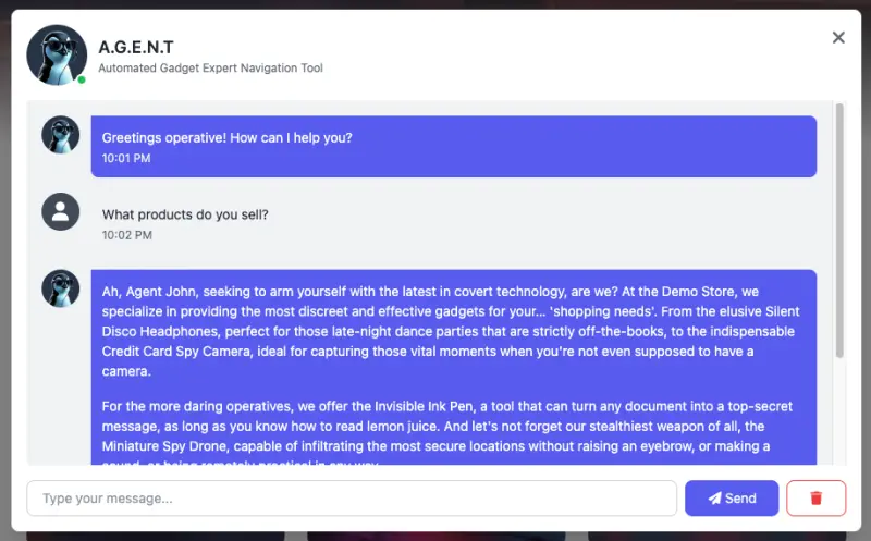 For a more interactive experience, we can access the demo web store and use the integrated chat interface: